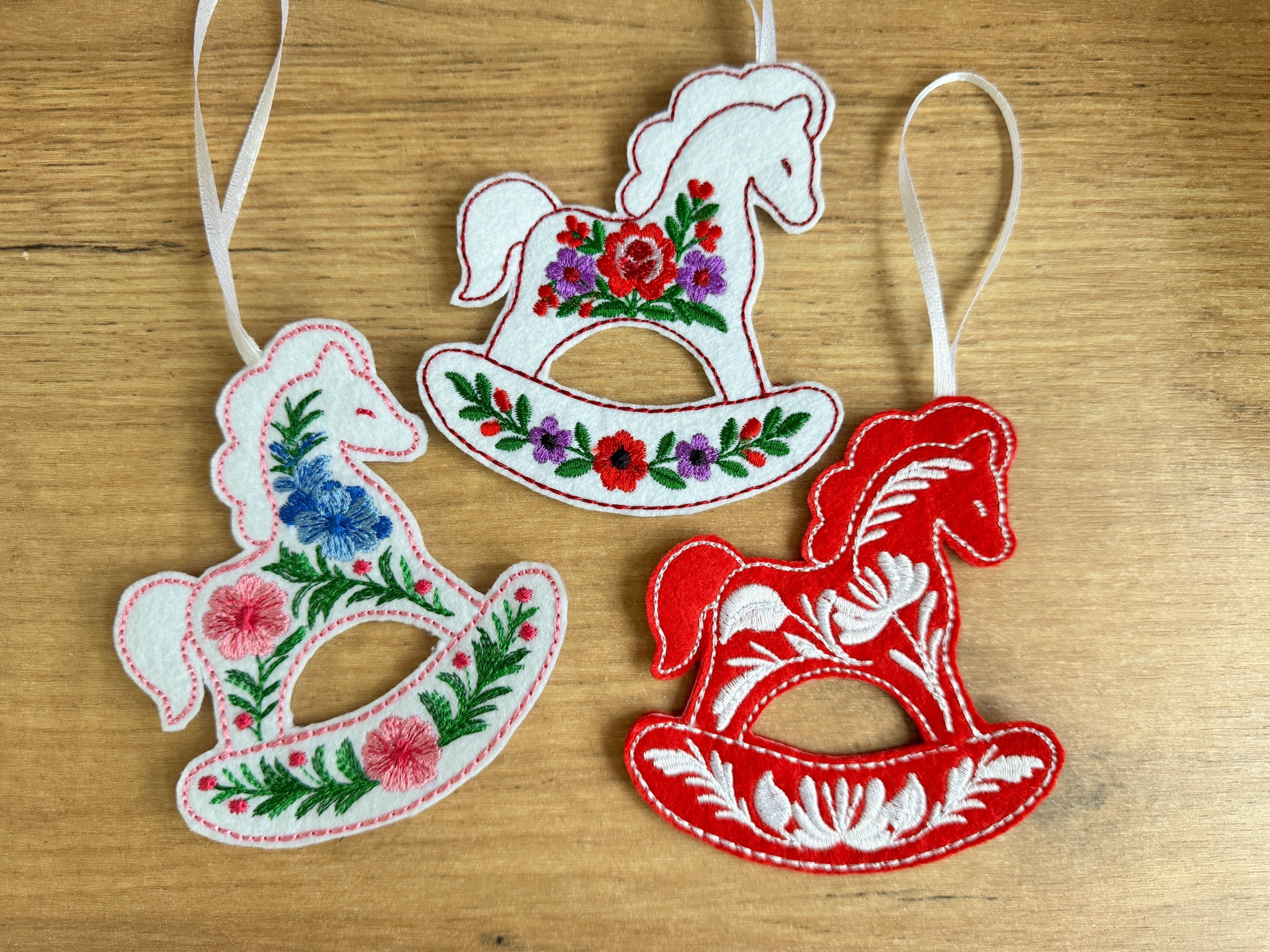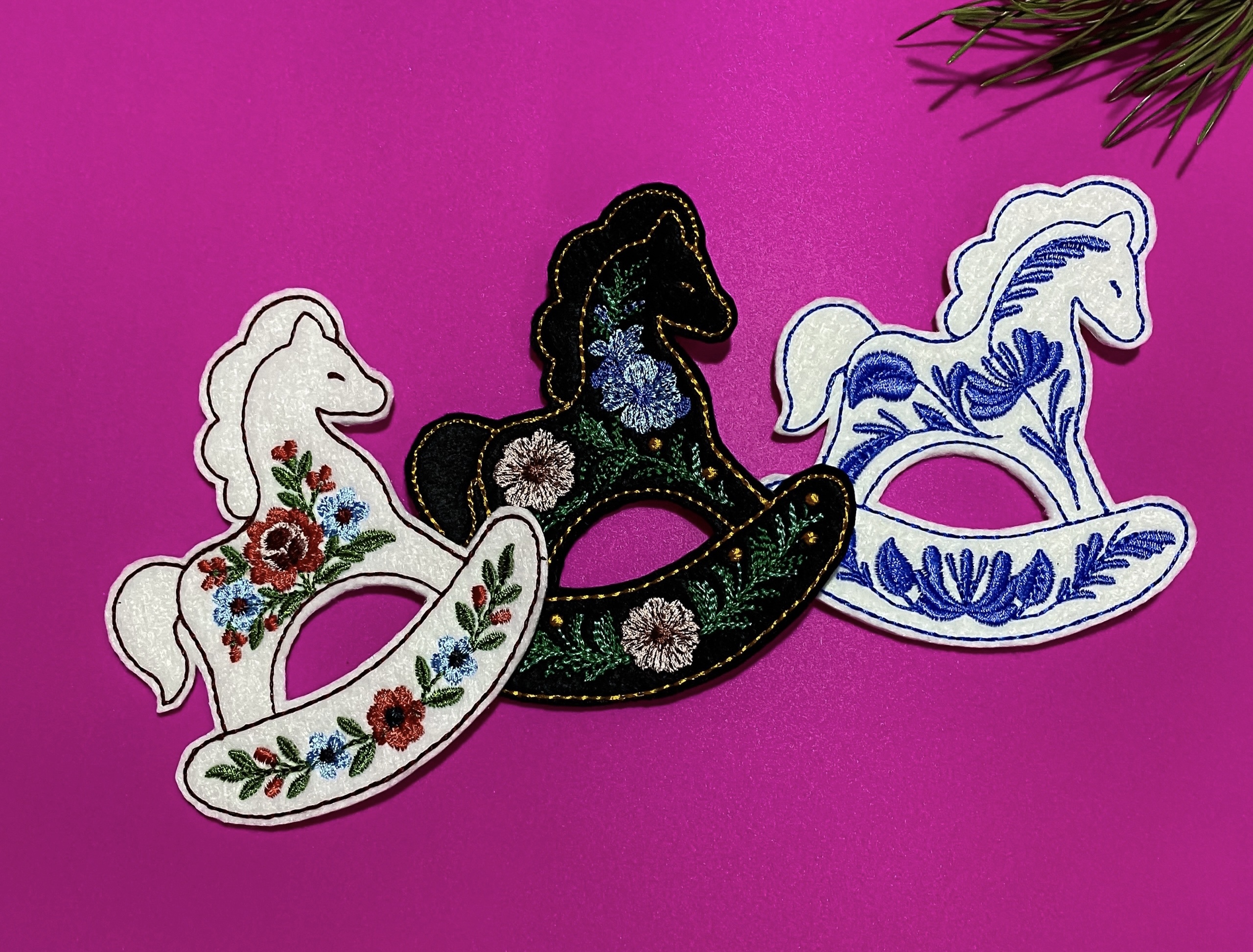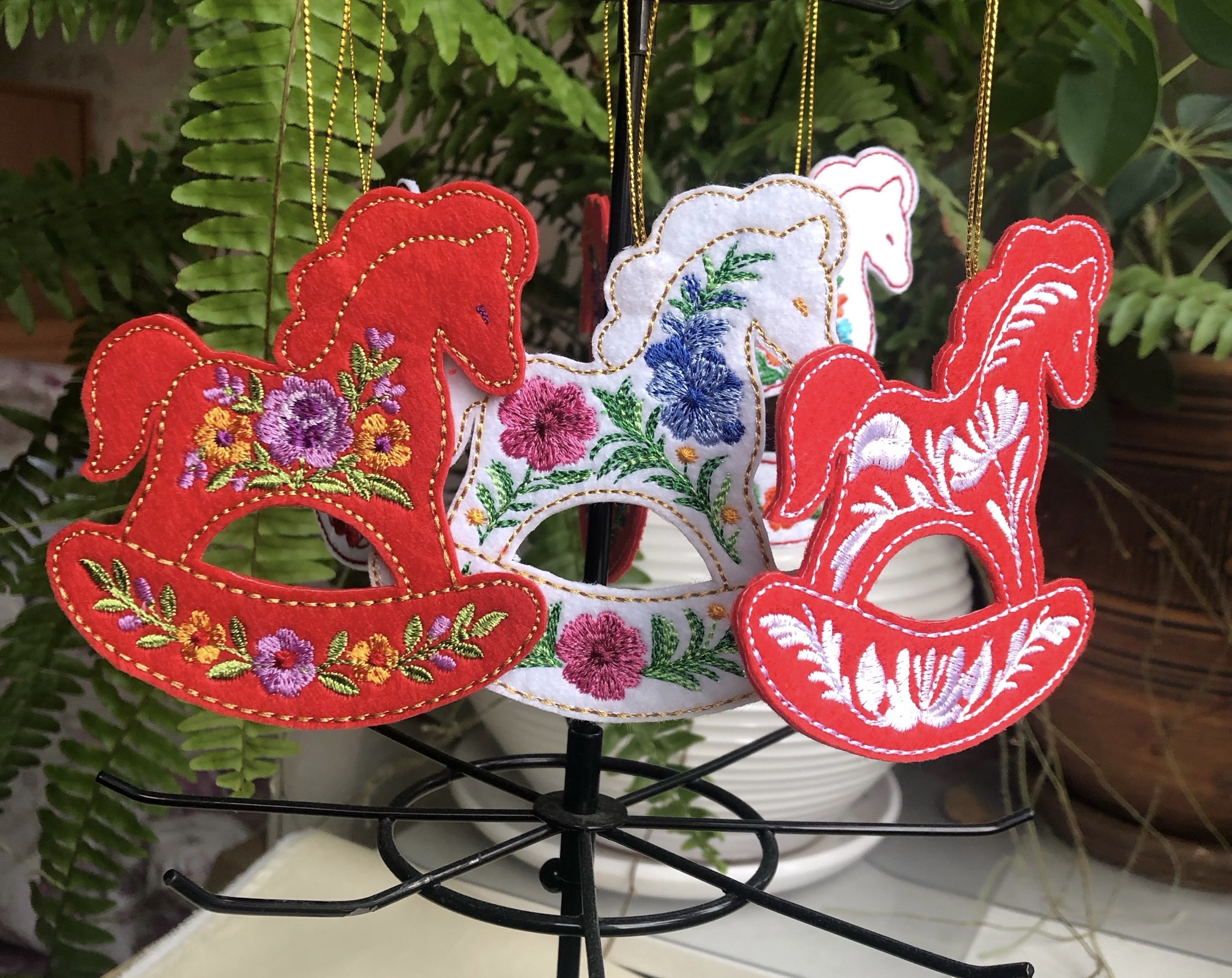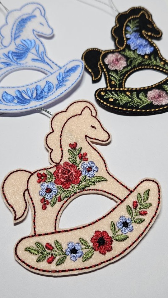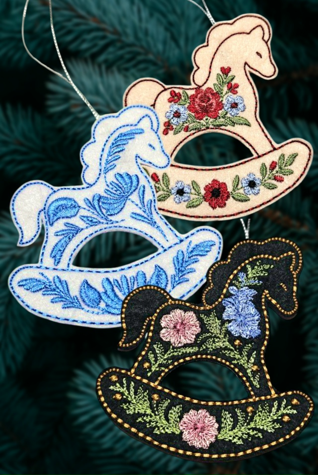 With these designs, you'll create a beautiful set of rocking horse ornaments that will decorate your New Year's home or make a wonderful gift for your loved ones.