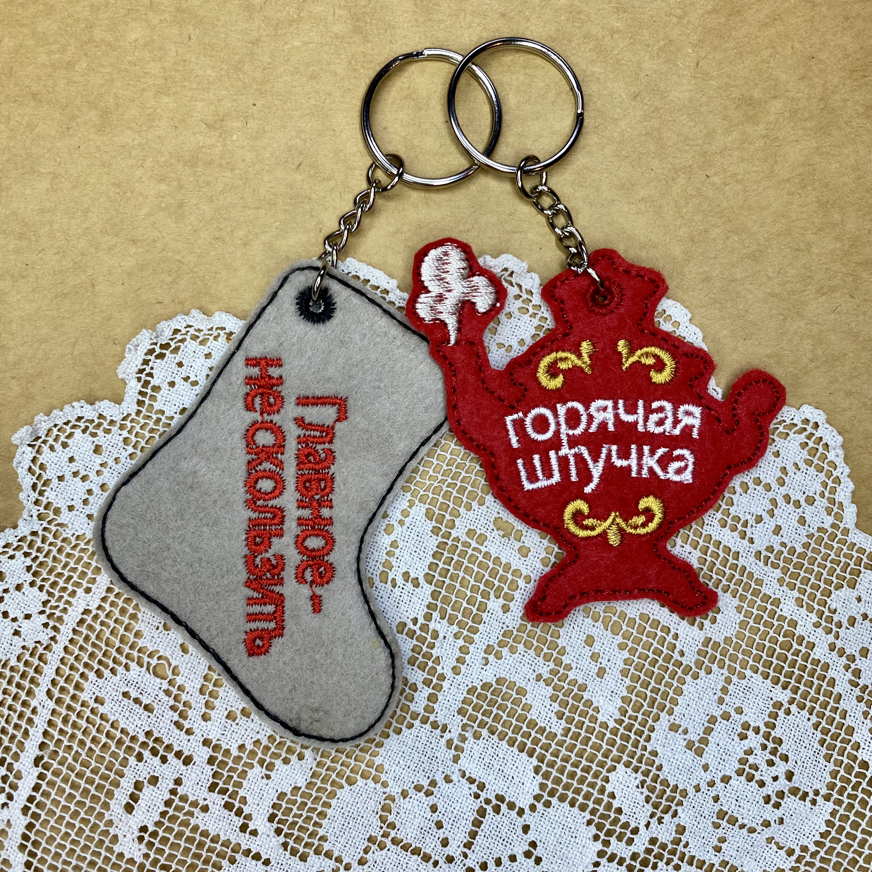 Set of 6 Russian-style keychains, machine embroidery designs